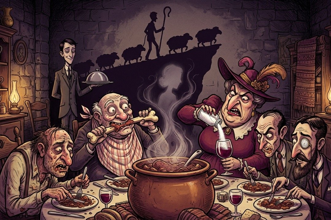 ‘দুশ্চিন্তার কোনোই কারণ নেই। তরকারির প্রত্যেক গ্রাসে সোরানিয়ার উপস্থিতি আপনারা অনুভব করবেন! মাংসটা আপনাদের জন্যে রান্না করে যেতে ও খুব করেই চাইছিল এবং তাই সে করেছে। রান্না করতে গিয়ে ব্যাংকে পৌঁছতে নিশ্চয়ই আজ ওর দেরি হয়েছে।’ ‘তাহলে আর দেরি কেন? খাবোস্য শীঘ্রম। মাংসটা তাড়াতাড়ি নিয়ে এসো বাছা!’ মসিও ওনোরে বললেন। অতি সুস্বাদু ভেড়ার মাংস গপাগপ সাঁটবার সুখভাবনায় পেটুক বুড়োর জিহ্বায় ইতিমধ্যেই লালার বান ডেকেছে।